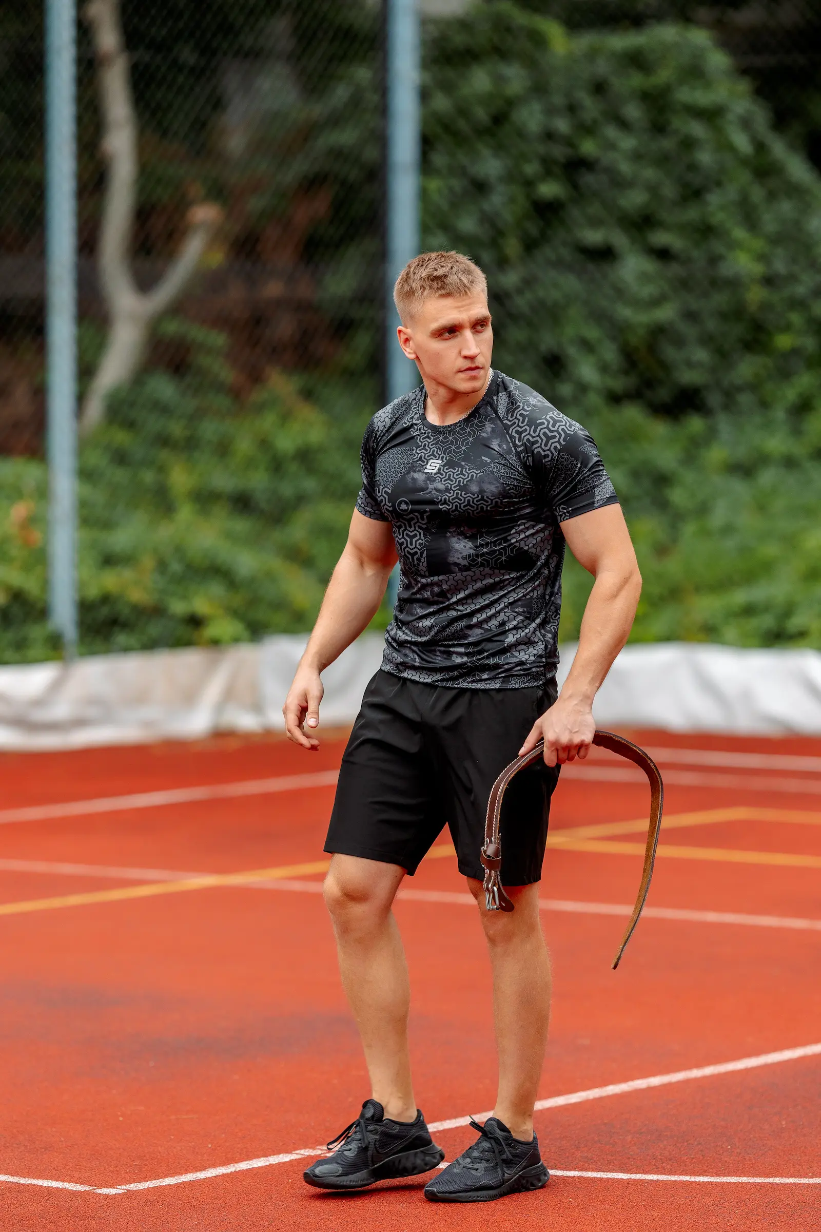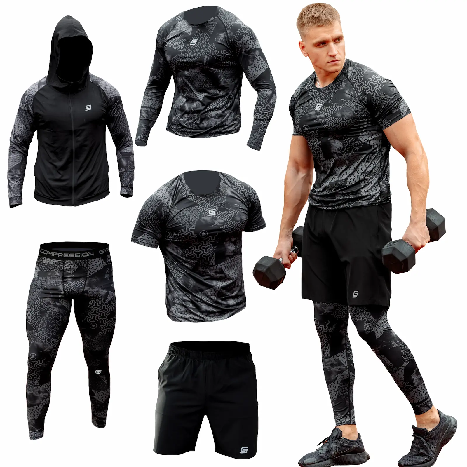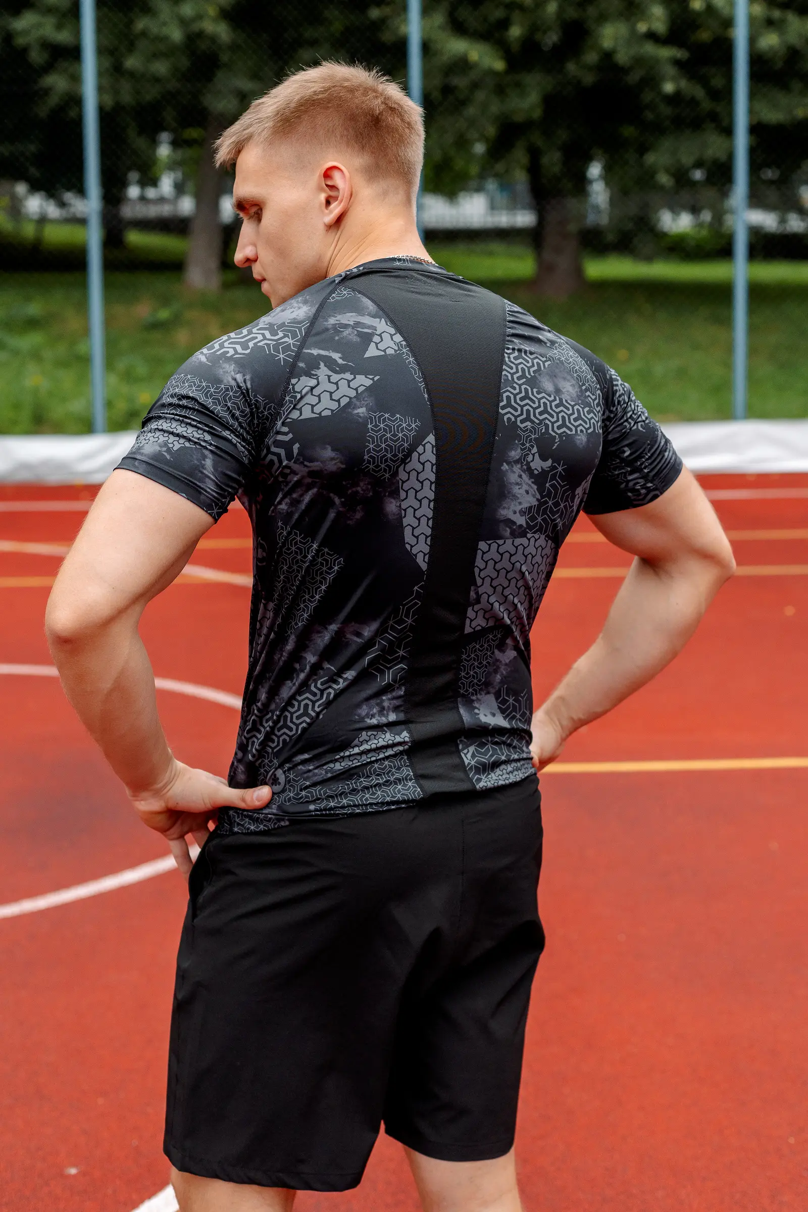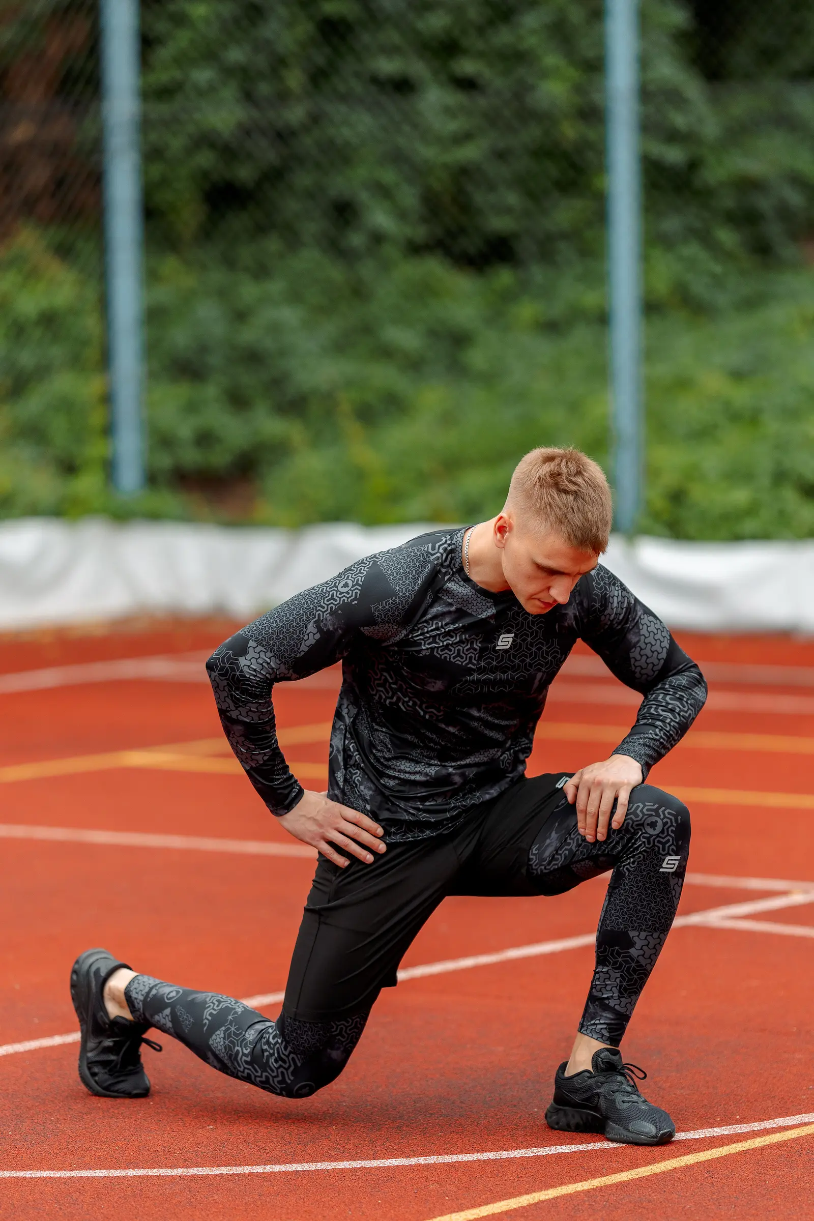 Zestaw Gym Compression Shadow Matrix 5w1 – termoaktywna odzież kompresyjna o unikalnym wzorze. Komfort, dopasowanie i wydajność w każdym treningu.
