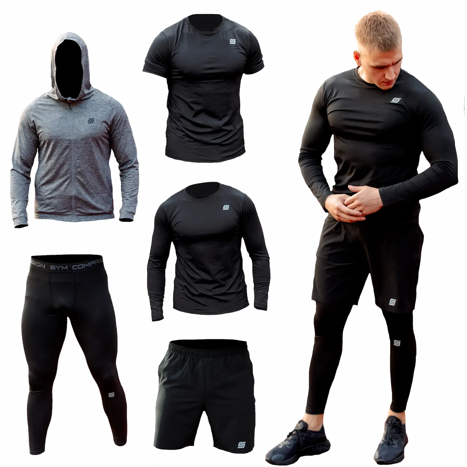 Zestaw Gym Compression Urban Grey 5w1 – termoaktywna odzież kompresyjna dla aktywnych. Komfort, styl i pełna swoboda ruchów podczas treningu.