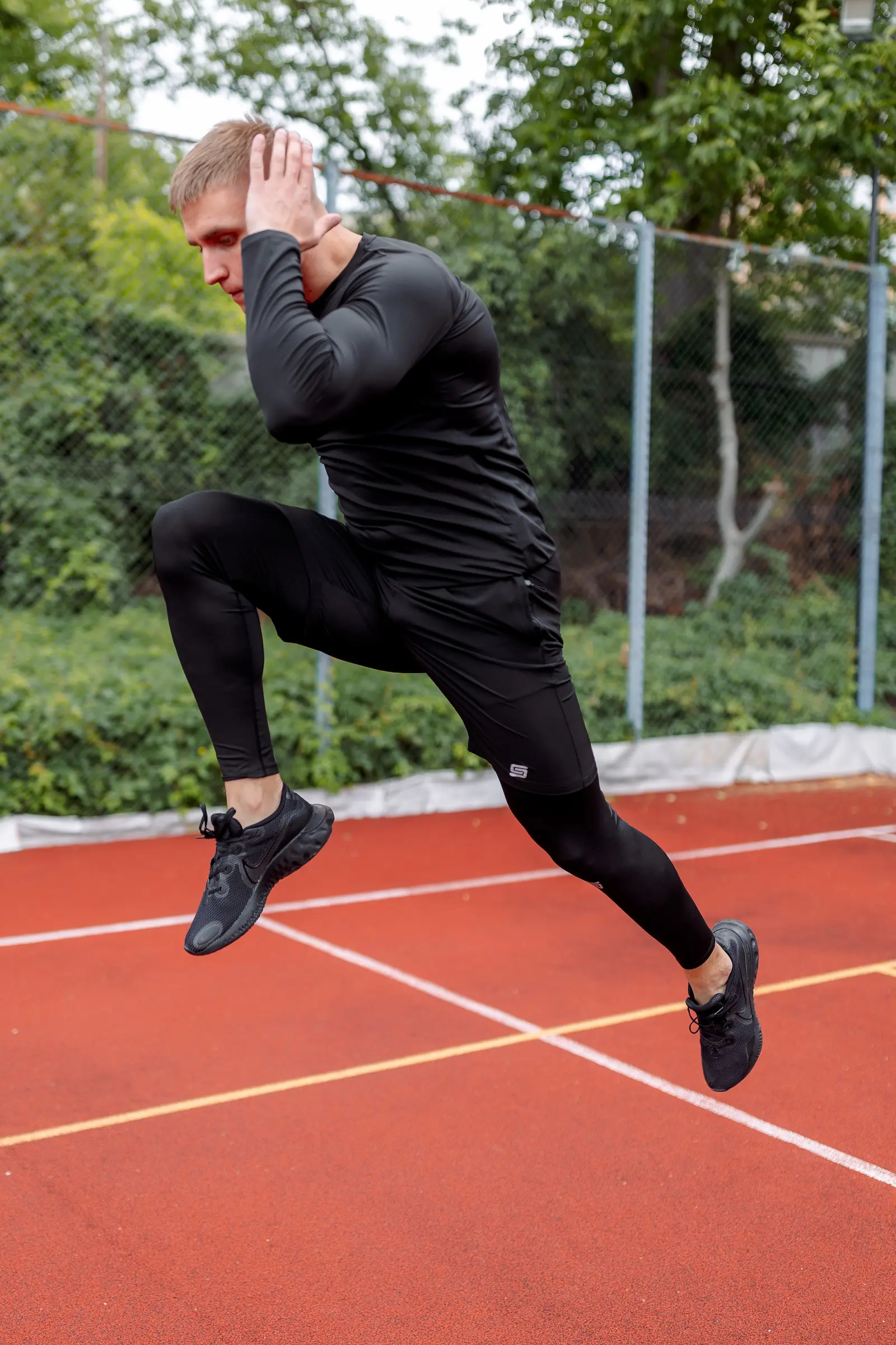 Komplet Gym Compression Obsidian Black 7w1 to najbardziej rozbudowany zestaw treningowy dla prawdziwych entuzjastów sportu. Dzięki połączeniu zaawansowanych technologii termoaktywnych i kompresyjnych zapewnia kompleksowe wsparcie podczas każdego treningu, gwarantując suchość, stabilizację mięśni i pełną swobodę ruchów. To profesjonalne rozwiązanie dla tych, którzy nie akceptują kompromisów.